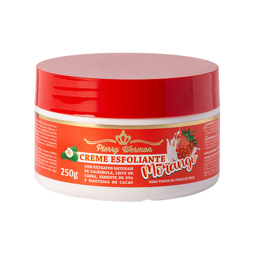 O CREME ESFOLIANTE MORANGO da PIERRY WERMON, lhe auxilia na remoção das células mortas que obstruem os poros para que a sua pele fique mais macia e preparada para receber outros cuidados, como cremes hidratantes (MANTEIGA HIDRATANTE da PIERRY WERMON).